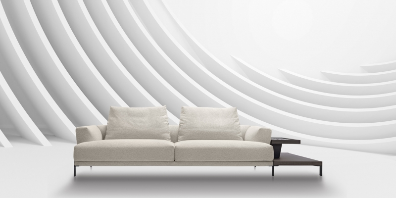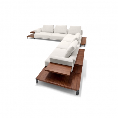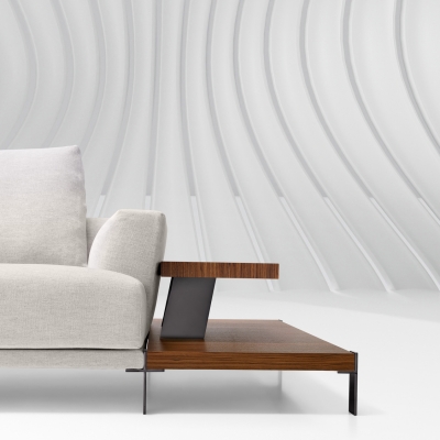 With its tall cushions, angled armrests, and deep seating position, That’s Life evokes a high-modern jazz lounge where one might easily trade glances with a member of the Mad Men ensemble. Autonomous platforms, both soft and rigid, come together in compositions that can be extended in virtually any direction to meet the various needs of domestic arrangement. The artisanally crafted components combine different types of wood with marble in imaginative juxtapositions. Capable of being paired with the upholstered elements in a variety of ways, they inspire an architectural free play that only strengthens the effect of articulated linearity. The gentle volumes of the armrests and backrests widen slightly toward the outer edges, as if beckoning in invitation. The pure, essential design of That’s Life, composed with geometric rigor, is immediately perceptible, and its vivid, layered lines have a dramatic appeal that’s all their own. Frank Sinatra’s immortal “That’s Life” urges all of us who’ve ever been knocked down to pick ourselves up “and get back in the race.” Refreshed and revived by this remarkable sofa, you’ll alight with the verve to do just that.