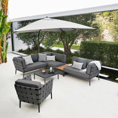 The Conic coffee table can be used alone or as an elegant and practical way to connect the various modules of the Conic collection. It is very simple to connect the coffee table with the other modules in the Conic collection, and since it is made of aluminium, it is also easy to move around. The coffee table, like the rest of the Conic collection, can stay out all year round, requiring minimal maintenance and cleaning. However, it is recommended to cover your garden furniture with a cover during the winter season.