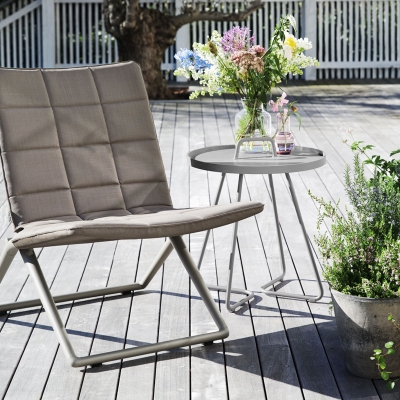 The Traveller folding chair marks a significant trend towards more flexible furniture. Furniture, which does not dictate a specific area of use through its design, but can be placed both inside and out. The Traveller is build around an aluminium lightweight frame that folds easily. Just as functional is the quilted seat and back of Cane-line AirTouch and QuickDry® Foam, making cushions obsolete. This folding chair is great for urban areas where space could be limited; a rooftop or balcony or take it along to the park or beach. The Traveller is designed by two of Denmark’s most esteemed designers, Foersom & Hiort-Lorenzen MDD.