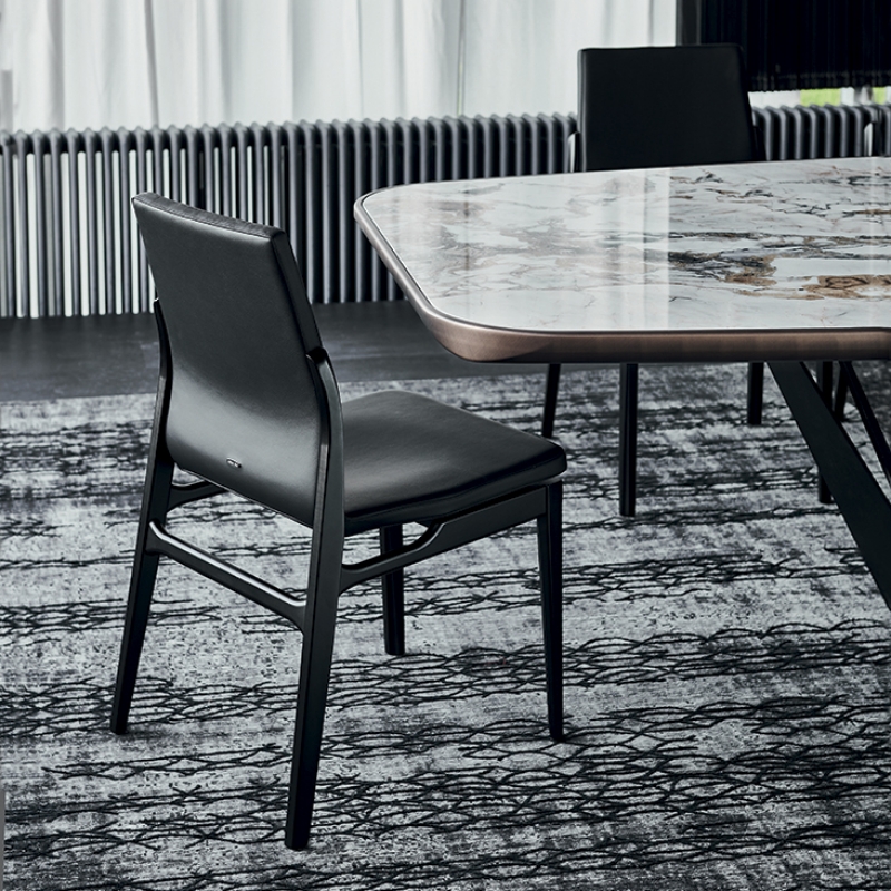 Ginevra is a sophisticated piece of furniture, elegantly simple, and able to furnish both residential projects and design workspaces. The expert craftmanship of the refined wooden base combined with the wide range of coverings results in multiple styling combinations allowing you to furnish your dining room with personality.