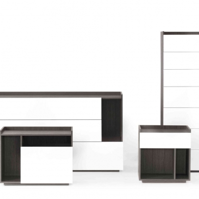 Designed by Daniel Debiasi and Federico Sandri, Tip is the collection designed for bedroom storage features a chest of drawers, tallboy and side table, with the later available in two different versions. A contemporary, simple collection which experiments with open and closed spaces, Tip combines the heat-treated oak of the structure with drawer fronts available in matt or glossy lacquer, Canaletto walnut or the sophisticated Argilla, which is silky to the touch and pleasant to look at.