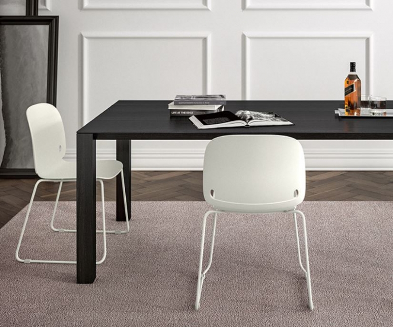 Intro as in “introverted,” from the idea of a person discreetly folding his hands behind his back. The essential design expresses a specific character: the base with its slender lines supports a comfortable seat, welcoming, soft to the touch. Seen from behind, the back displays the folded arms that provide a handy grip for lifting and moving the chair. The stackable structure permits optimization of spaces used for entertaining guests. Thanks to its form and the characteristics of its materials, Intro is also an excellent choice for any space in the home.