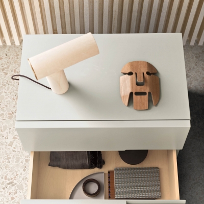 With their subtle design and distinctive details, Segno bedside and drawer units add a fresh, modern accent to any bedroom. Compact, modular arrangements create customised space-saving solutions thanks to the wide range of sizes available. The distinguishing feature of this line is the way the linear handle is carved out of the exceptionally-thick fronts. The aligned handles – that can also mirror each other – produce an interesting alternation of distinctive, horizontal “marks”.